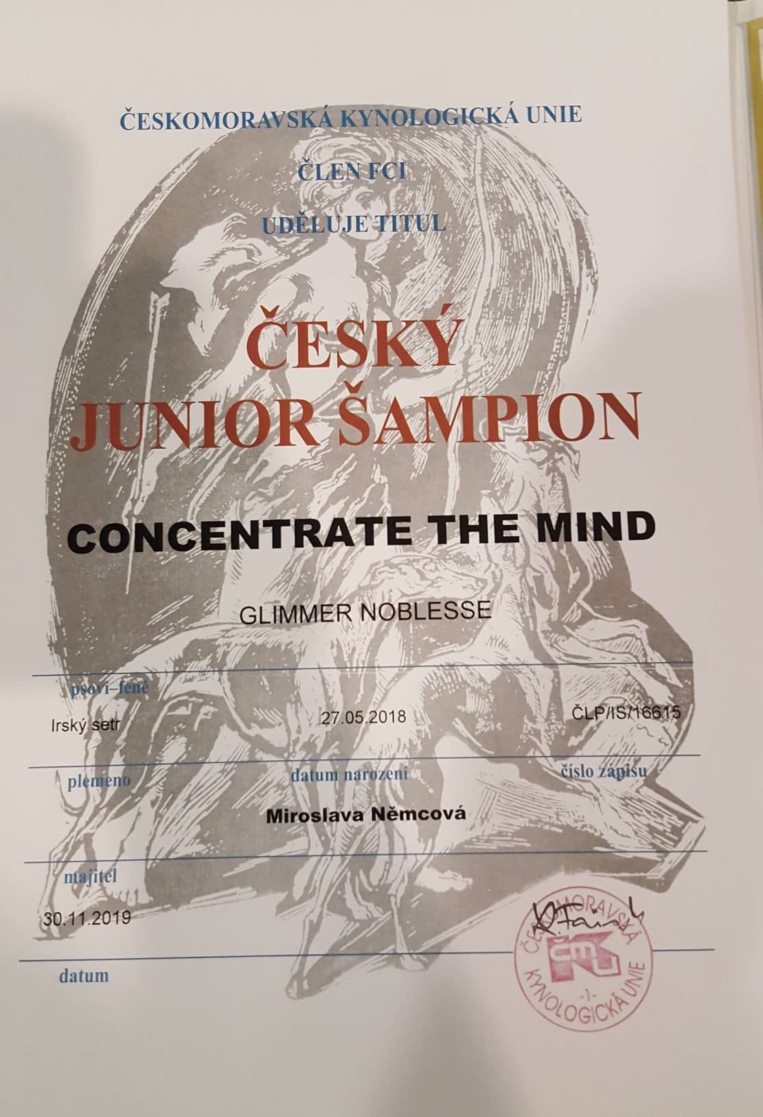 11.1.2020 - rozhodčí MVDr. František Šimek - Amazing Red Girl Mirelionne (Amina) - mezitřída V1, CAC